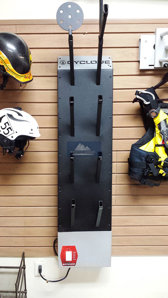The Cyclone 16 boot dryer is a compact and sleek appliance that fits nicely in your garage, even under a custom helmet cubby. Its smart design saves space, making it ideal if you have limited storage. If you need more capacity, the Cyclone 16 also comes in a slightly larger size to handle the needs of a big family or extra guests in your Utah home.