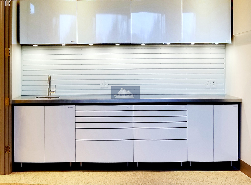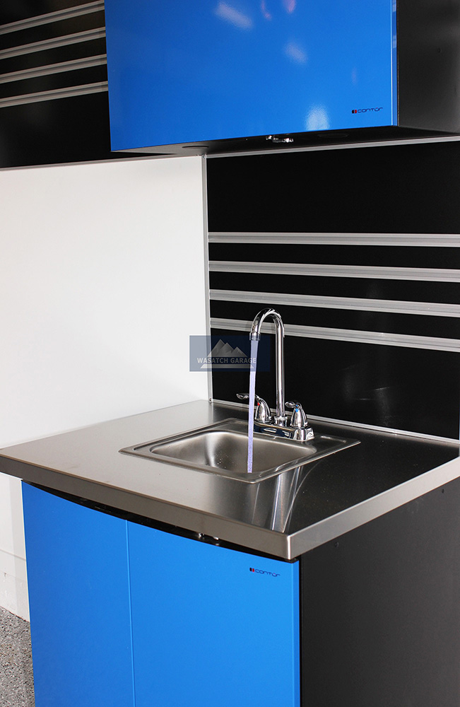 Our combination base storage cabinet and Sink unit provides a harmonious balance between style form and function for your garage.